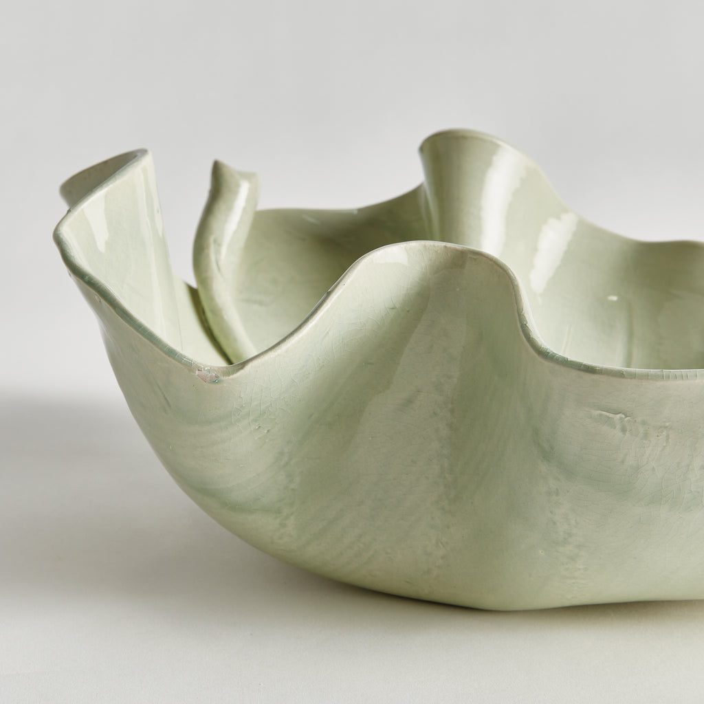 Each and every distinctive detail of the Moricento Leaf Sculpture is hand-sculpted by Italian artisans in Tuscany. A classic design in a soft verdant glaze. With an extraordinary craftsmanship passed down through generations, each piece is a true original. In grand scale, a dynamic centerpiece for feature table, kitchen island or mantel.