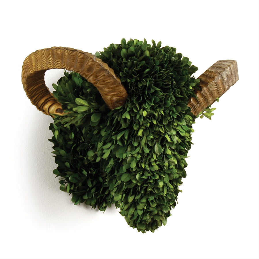 Real English boxwoods, preserved and painstakingly assembled by our masterful artists. A playful take on a hunter's trophy.With hanging keyhole