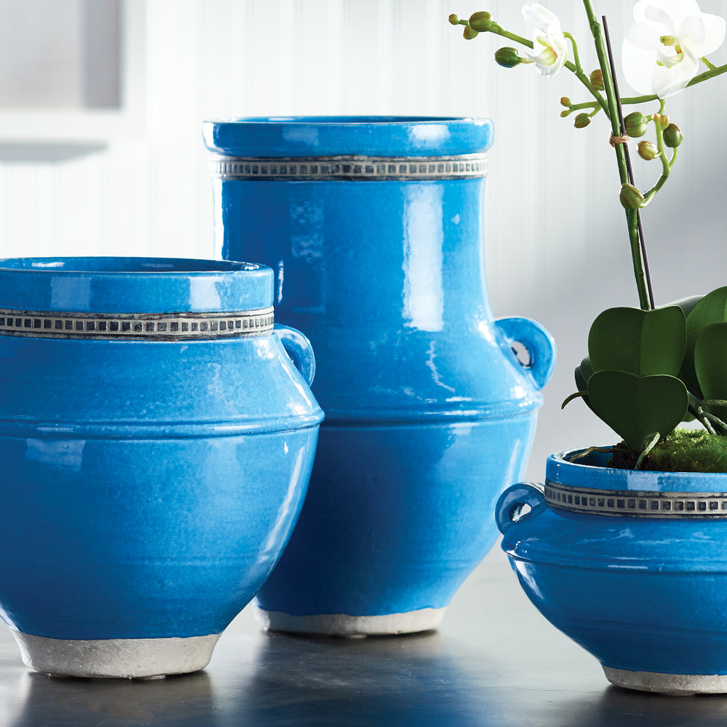 Handcrafted by skilled artisans, each piece is an original and varies in size and color. Dust with dry cloth. Protect fine furniture by lining the interior of the pottery when necessary. Decorative interior use only.