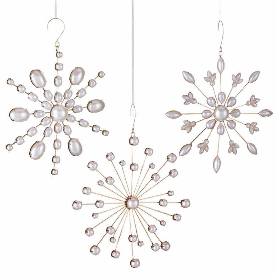 Napa Home Garden, VINTAGE PEARL SNOWFLAKE ORNS ,SET OF 3,z4194whg