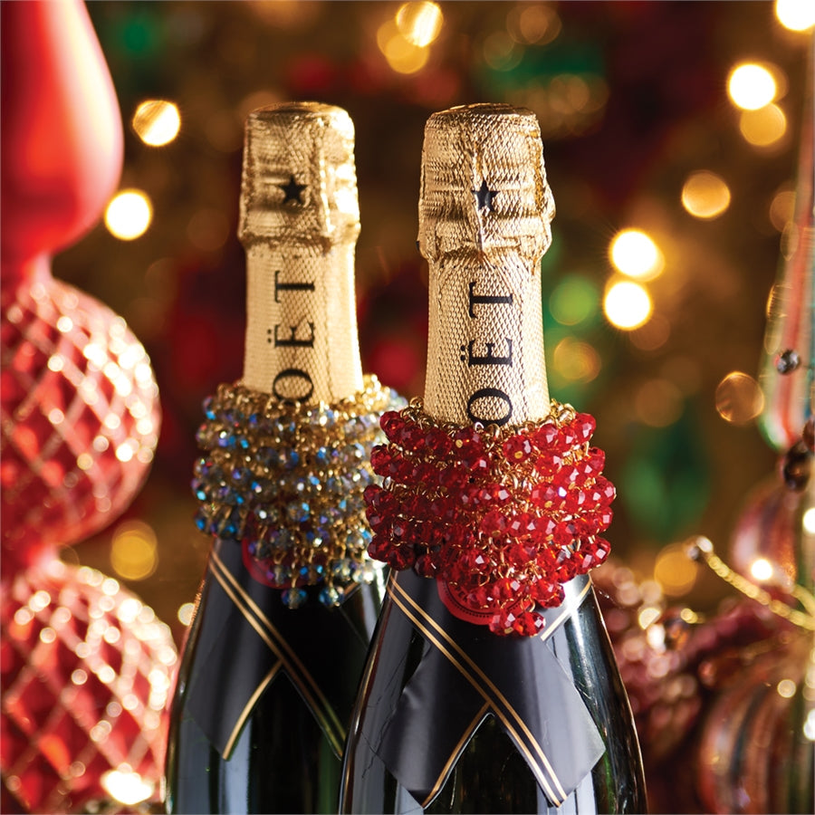 All dressed up and off to the party. This Jewel Wine Bottle Sash is a dashing accessory. Along with your favorite vino, makes a great hostess gift.