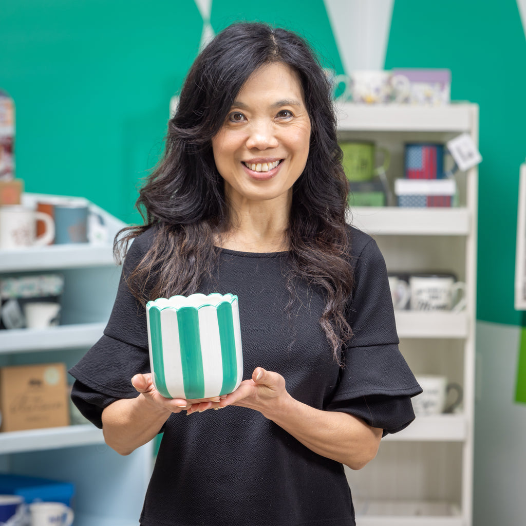 Palm Beach Planter, Ceramic Scalloped Green and White Stripe
