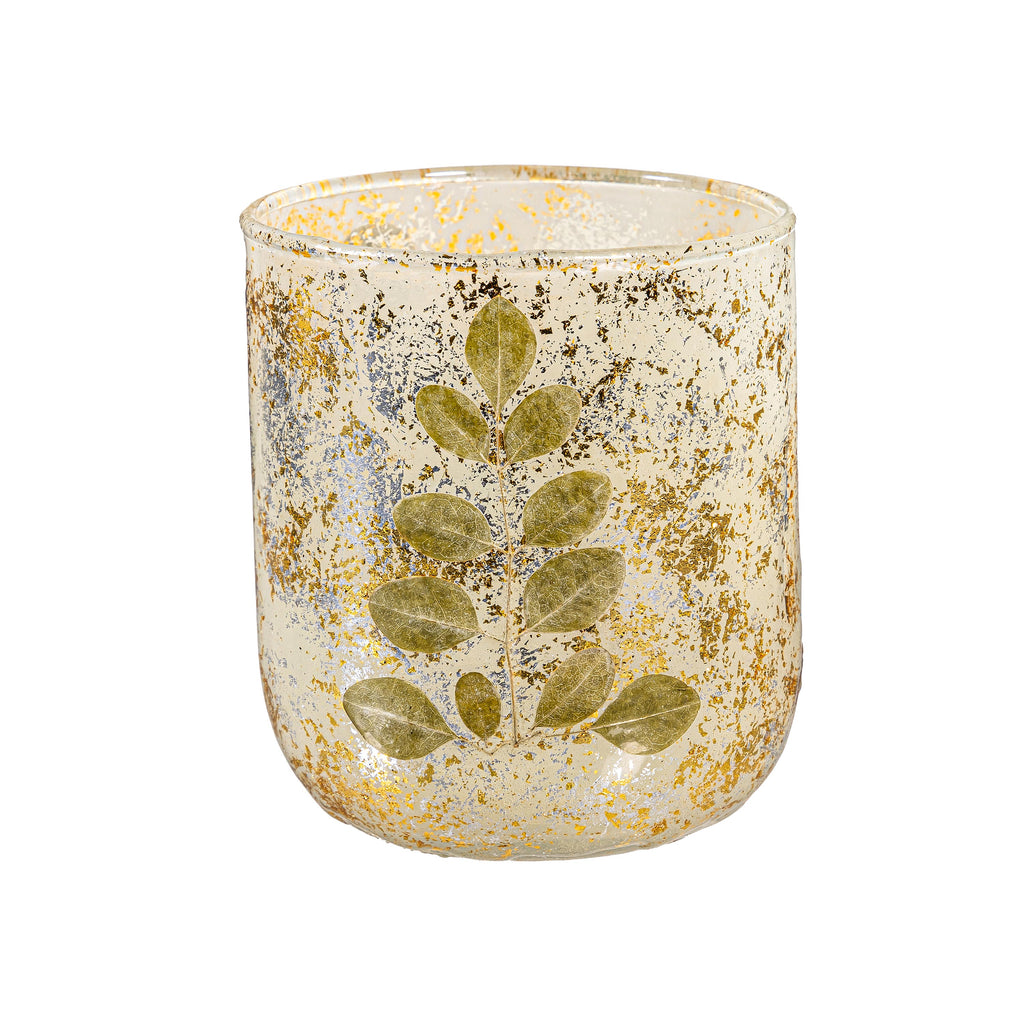 - Crafted from premium glass with a unique pressed foliage pattern.