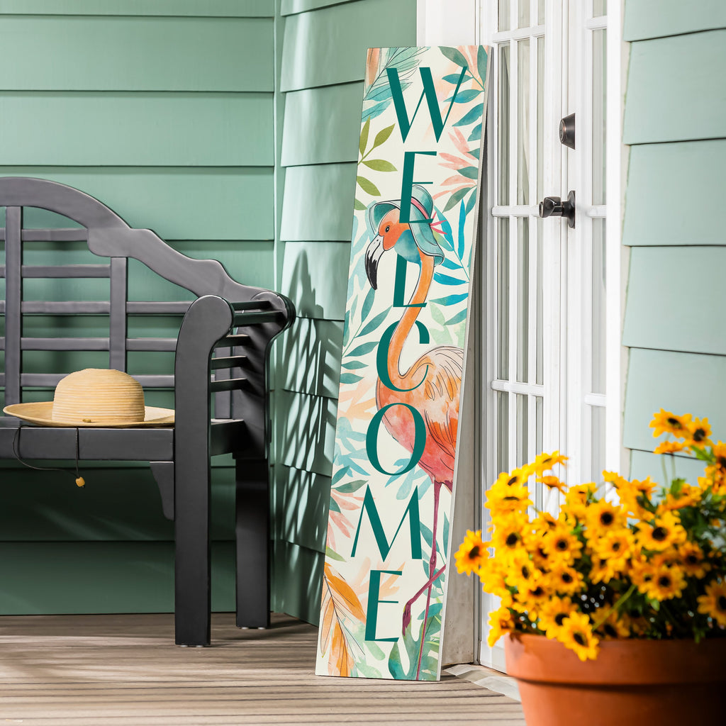 Welcome guests with the vibrant Palm Beach Flamingo Porch Leaner, perfect for adding a tropical touch to your summer decor. Featuring a charming flamingo design, this leaner is both eye-catching and inviting.