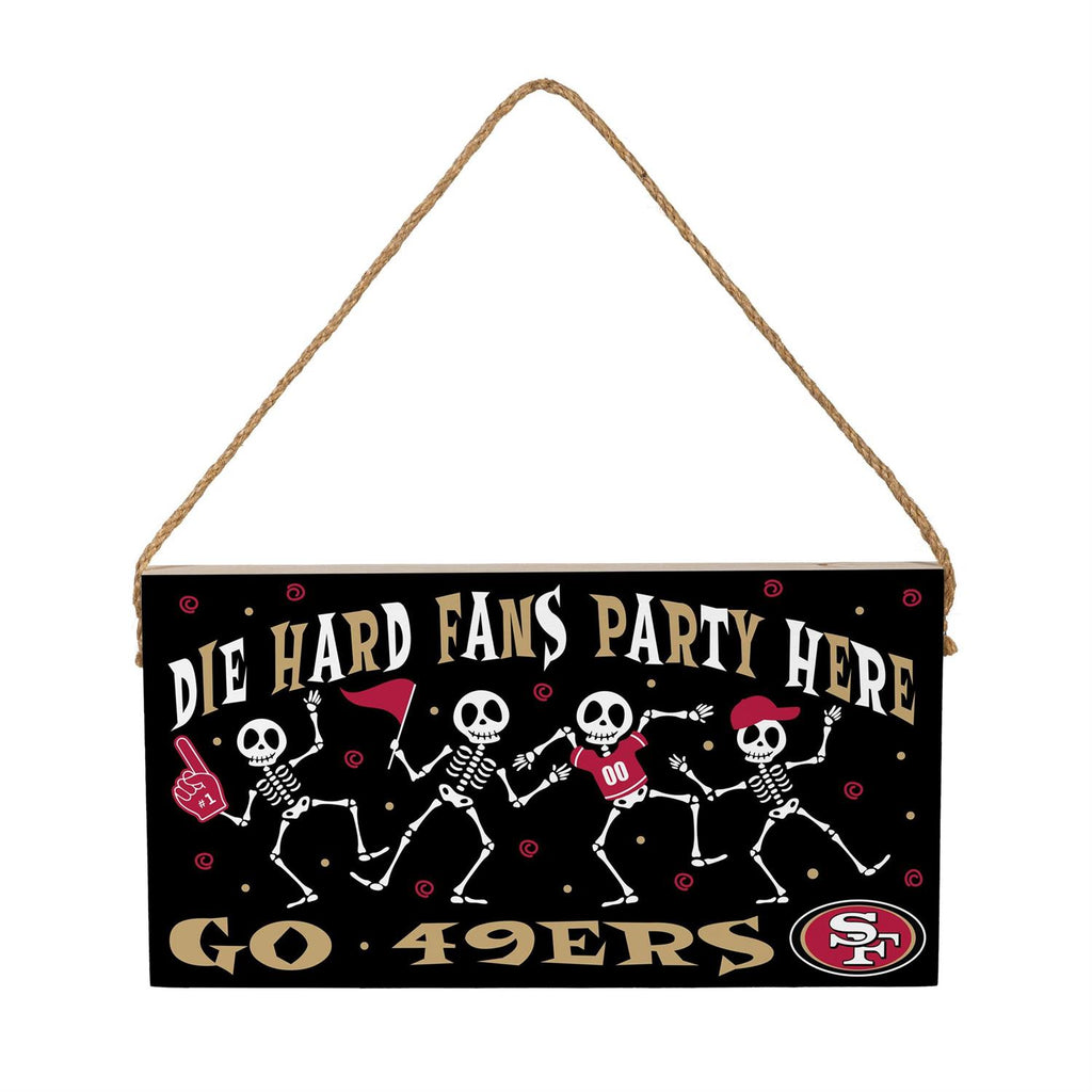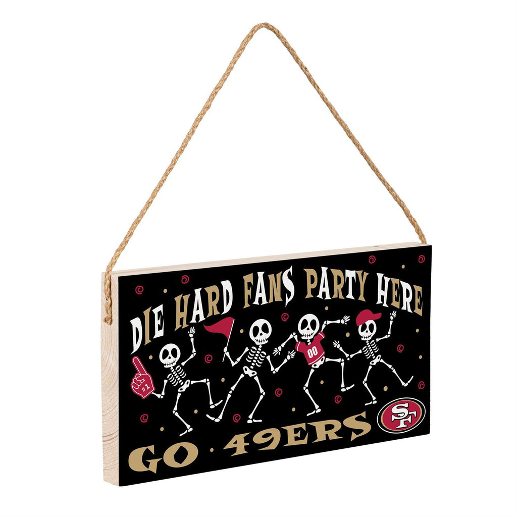 Celebrate Halloween and your love for the San Francisco 49ers with this playful wood wall sign. Perfect for die-hard fans, this 6x11 inch sign features a fun skeleton design, adding a festive touch to any room or party. Made from durable wood, it's designed to last through the season and beyond. The sign's bold colors and team logo make it a standout piece, perfect for your home, office, or fan cave. Easy to hang with its sturdy rope, it's an effortless way to show off your team spirit and Halloween cheer.