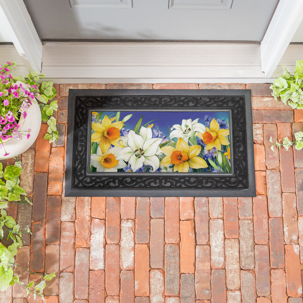 Welcome the spring season with this vibrant Blessings For Easter Sassafras Switch Mat, featuring a beautiful floral design of white and yellow flowers.