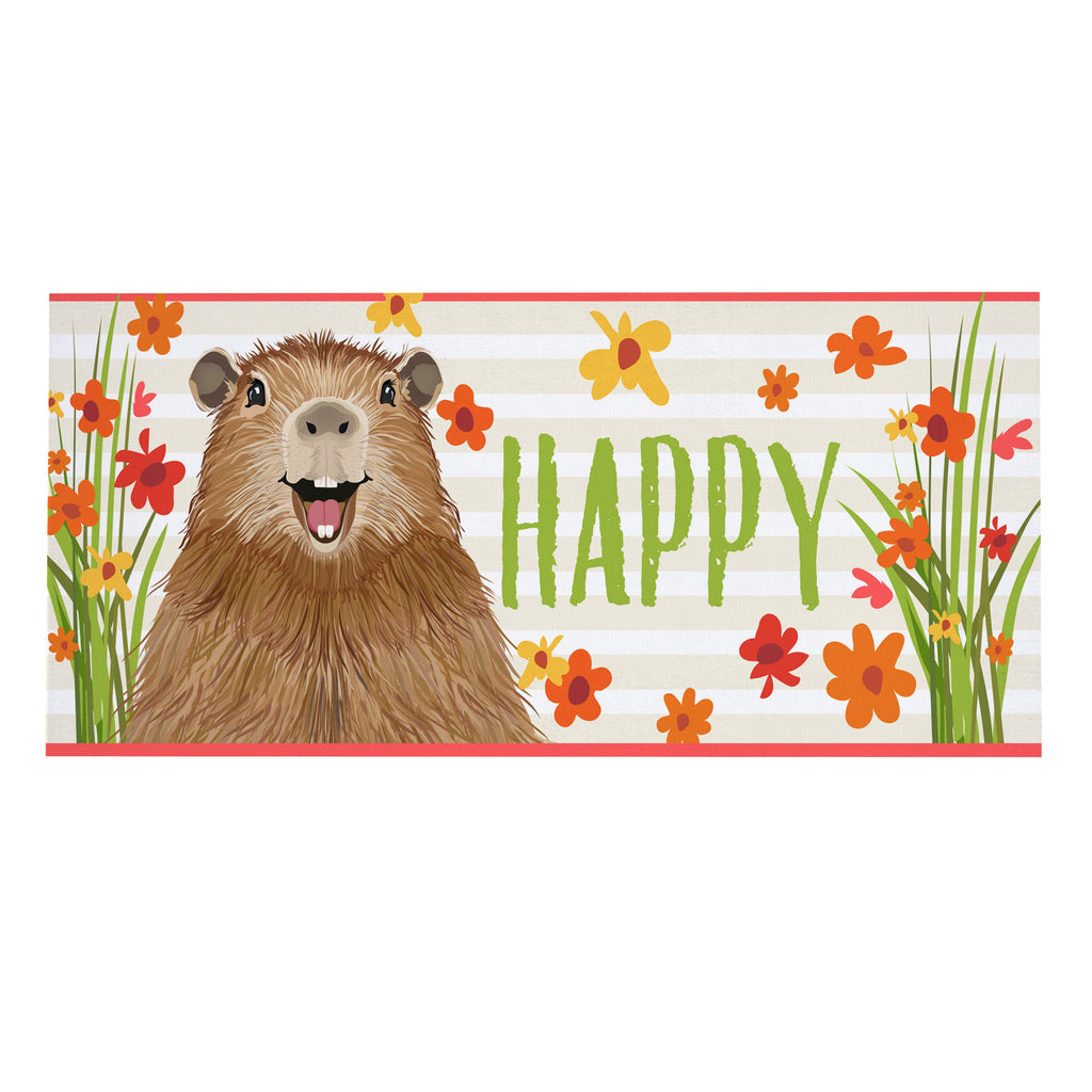 Brighten up your entryway with the Happy Capy Sassafras Switch Mat, featuring a cheerful capybara and vibrant floral design perfect for spring.