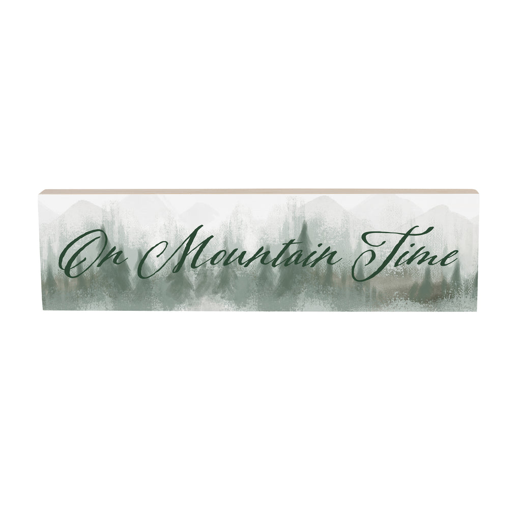 Elevate your home decor with this charming wood mantle sign featuring the phrase 'On Mountain Time'. Perfect for adding a rustic touch to any room.