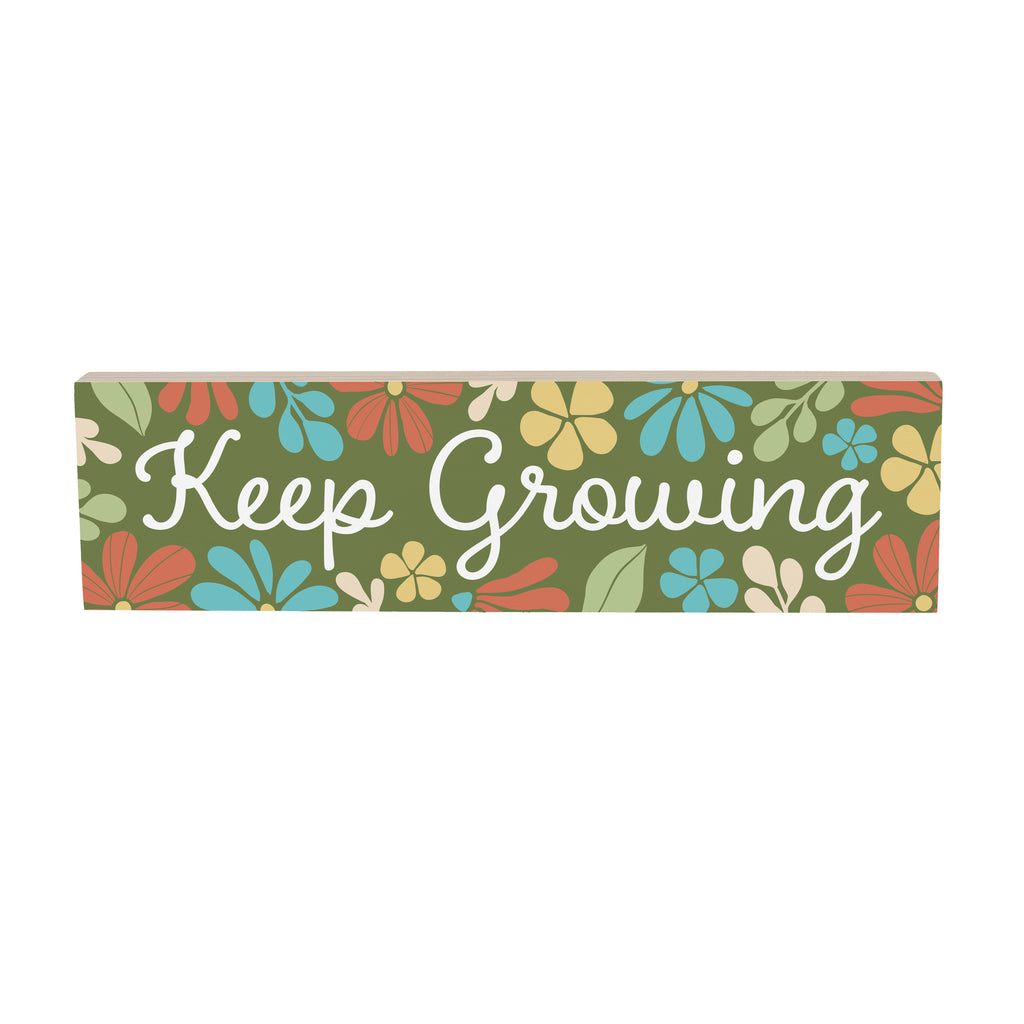 Floral Mod Wood Mantle Sign, "Keep Growing", 18"x5"