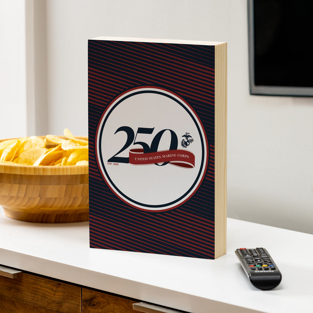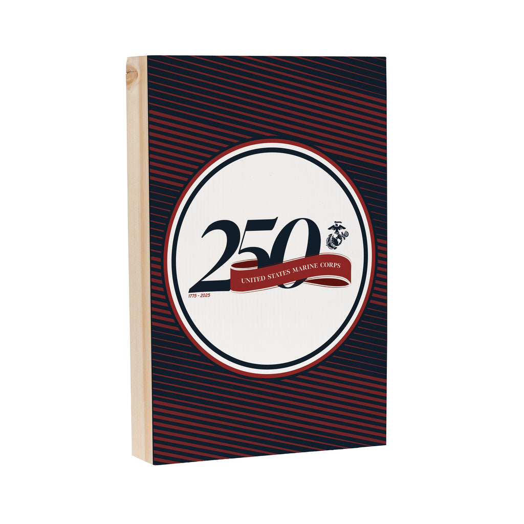Celebrate the 250th anniversary of the US Marine Corps with this striking wall plaque. Perfect for adding a patriotic touch to any room, this piece features a bold design with red and black stripes.