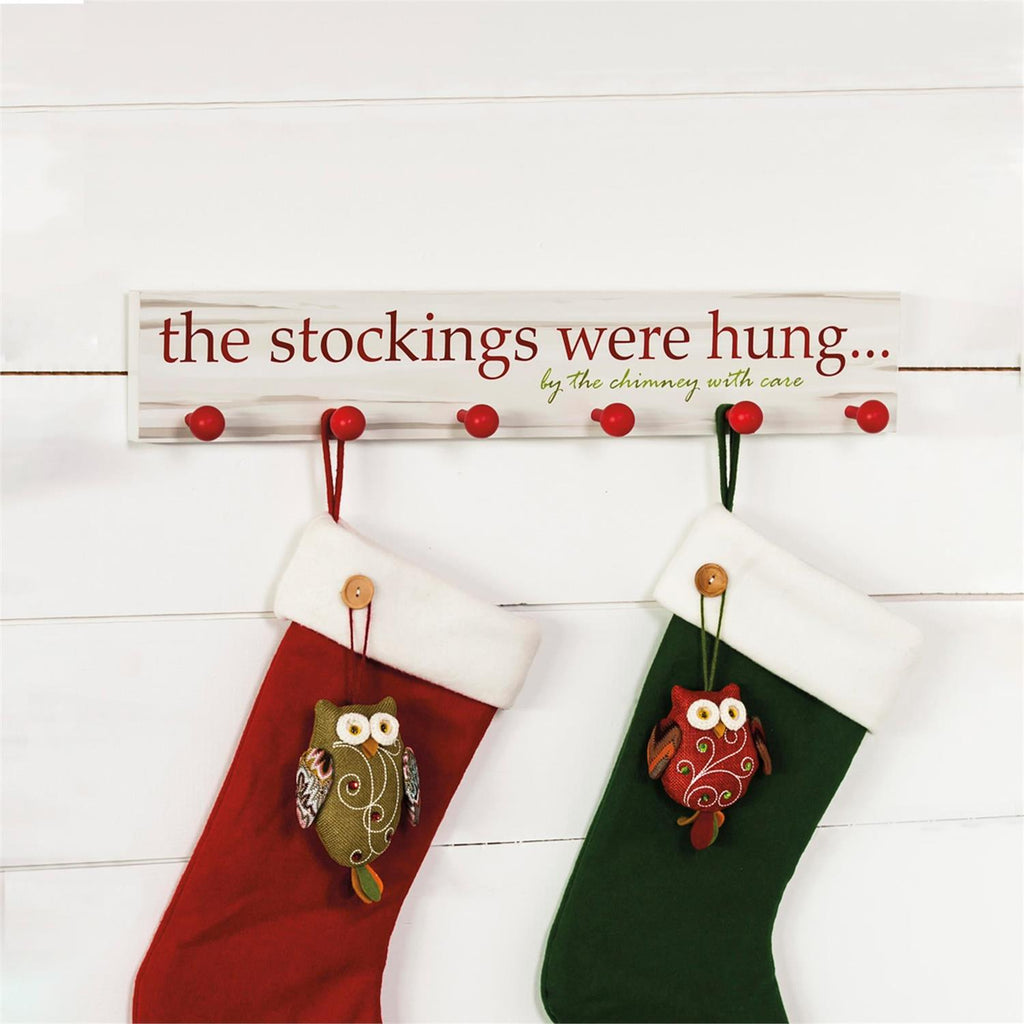 Celebrate the holiday spirit with this charming wooden mantel sign, perfect for adding a festive touch to your home. Measuring 24 inches in length, this sign features the classic phrase 'the stockings were hung… by the chimney with care' in a warm, inviting script. The durable wooden construction and neutral color palette make it a versatile addition to any holiday décor. Equipped with five sturdy hooks, it’s ideal for hanging stockings, garlands, or other seasonal decorations. Whether placed above the fireplace or along a hallway, this sign is sure to bring a touch of holiday magic to your home.