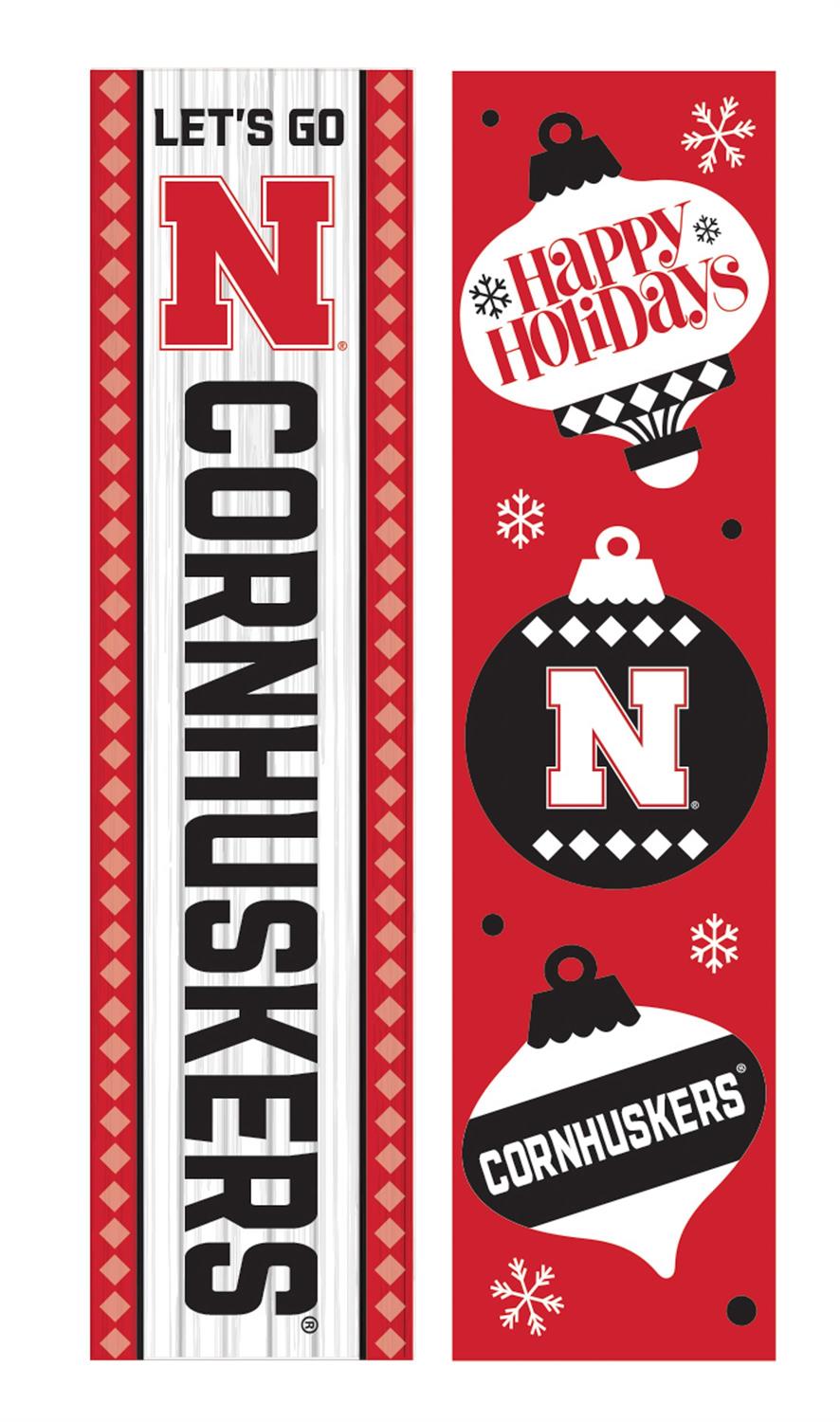 Celebrate the holiday season while showcasing your school spirit with this University of Nebraska 46" Double Sided Leaner. Perfect for your porch or entryway, this leaner features a festive design that proudly displays your support for the Cornhuskers. Made from durable materials to withstand the elements, this leaner is a great addition to your holiday decorations. Its double-sided feature ensures visibility from multiple angles, adding a touch of team pride to your home exterior.