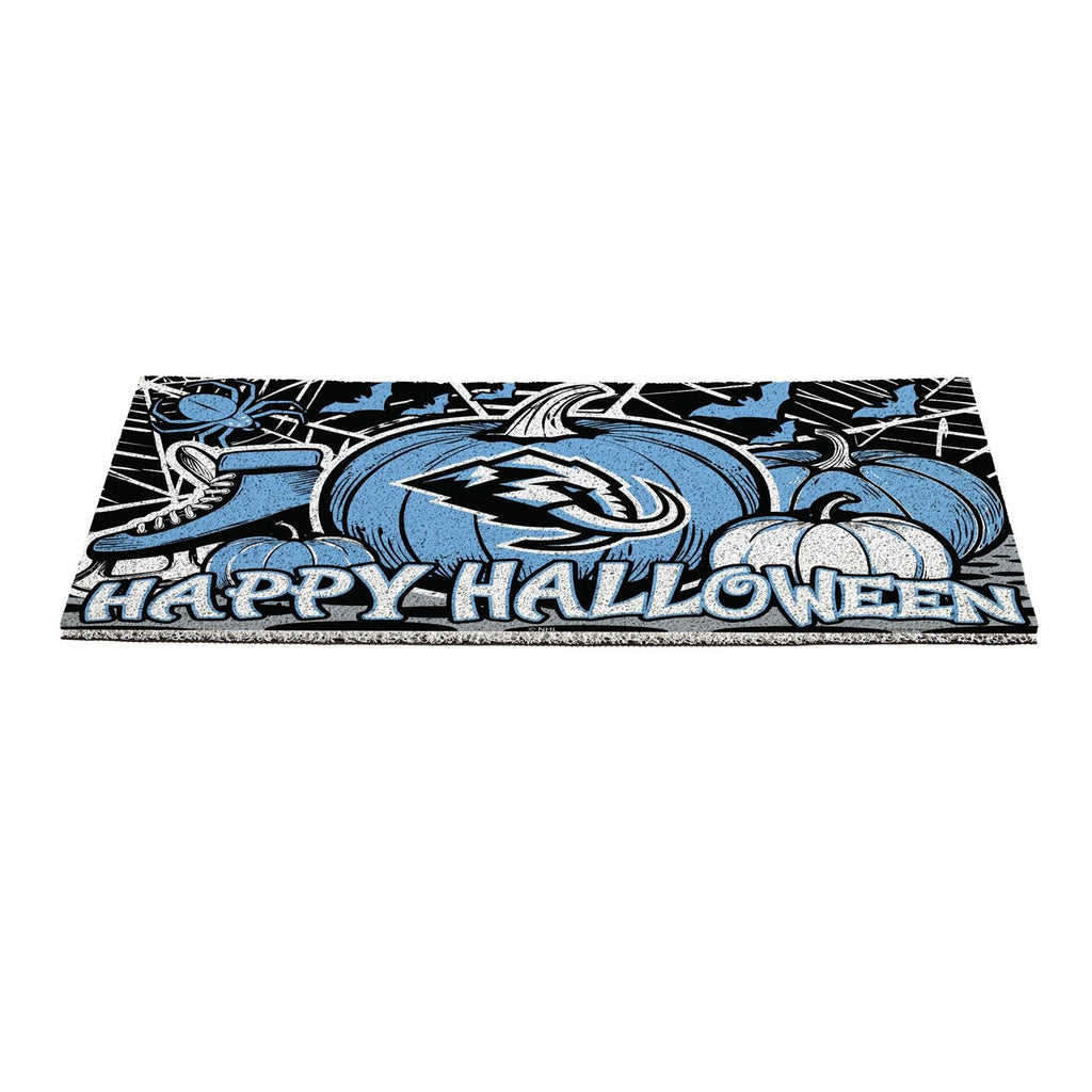 Elevate your Halloween decorations with the Utah Mammoth Halloween PVC Mat. Measuring 28" by 16", this eye-catching mat features a festive design with pumpkins, spider webs, and a playful "Happy Halloween" message. Crafted from durable PVC, it’s perfect for both indoor and outdoor use, ensuring your entryway stays stylish and welcoming. The vibrant blue and black color scheme adds a modern twist to traditional Halloween themes, making it a unique addition to your seasonal décor. Easy to clean and maintain, this mat is a practical and fun way to celebrate the spooky season.