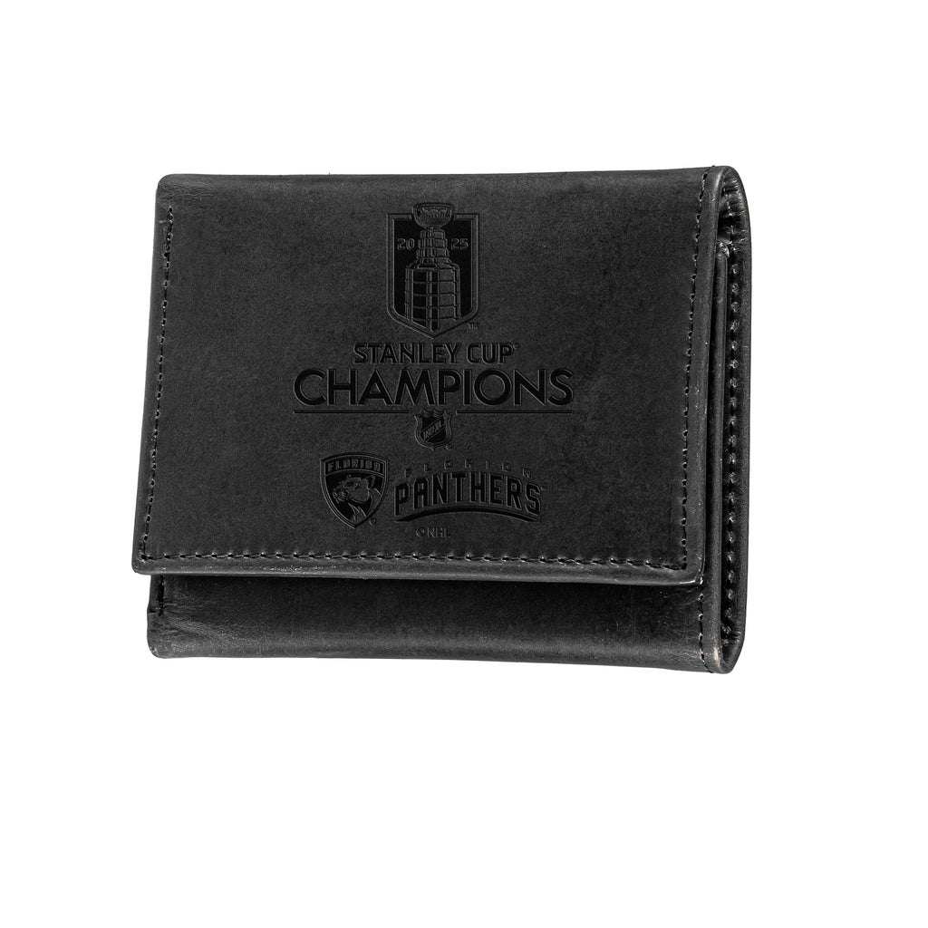 Celebrate the Florida Panthers' 2025 Stanley Cup victory with this sleek black tri-fold wallet, perfect for any fan. Crafted for both function and style, it holds your essentials securely.